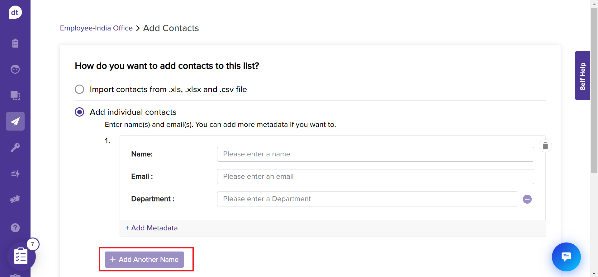 Click on + Add Another Name to add more contacts to the list. Repeat the step to add as many contacts as required.