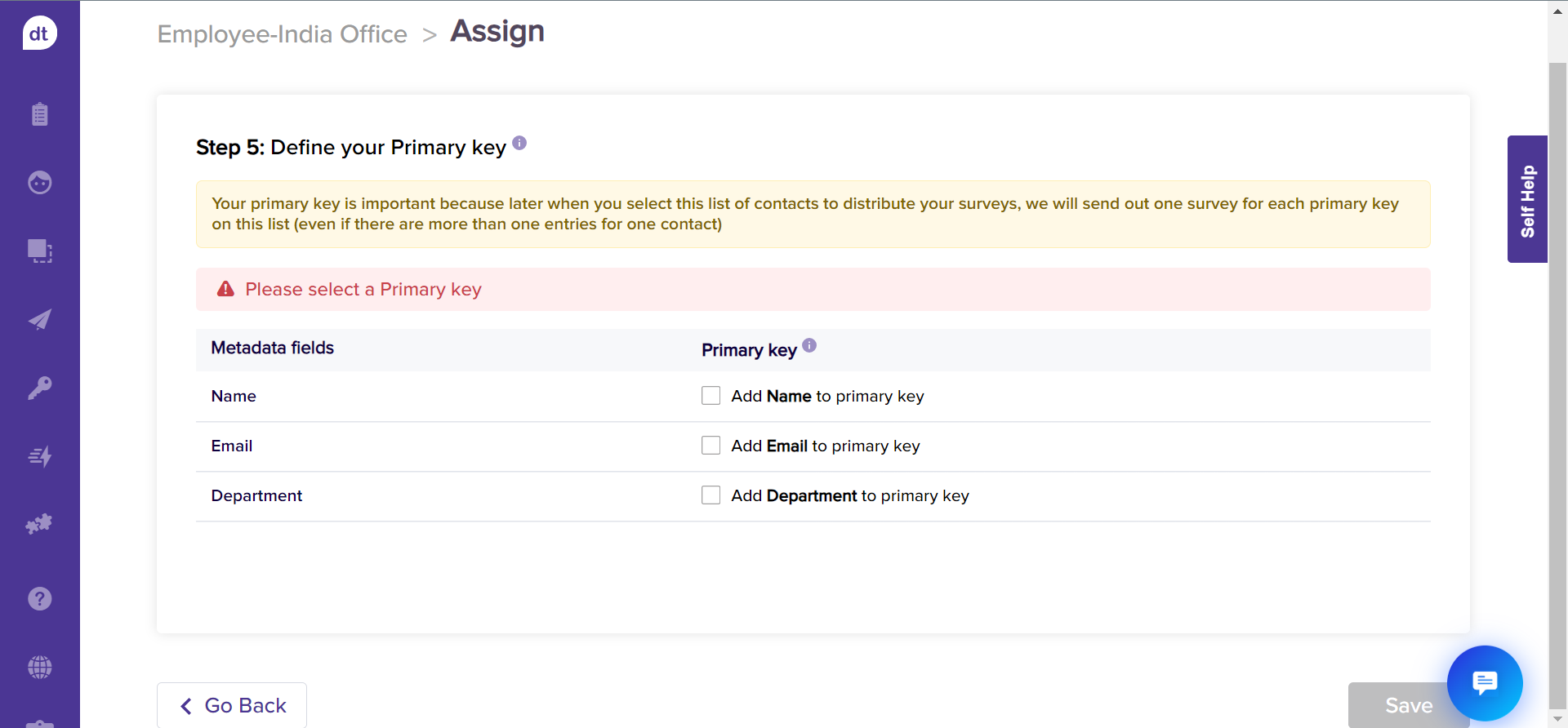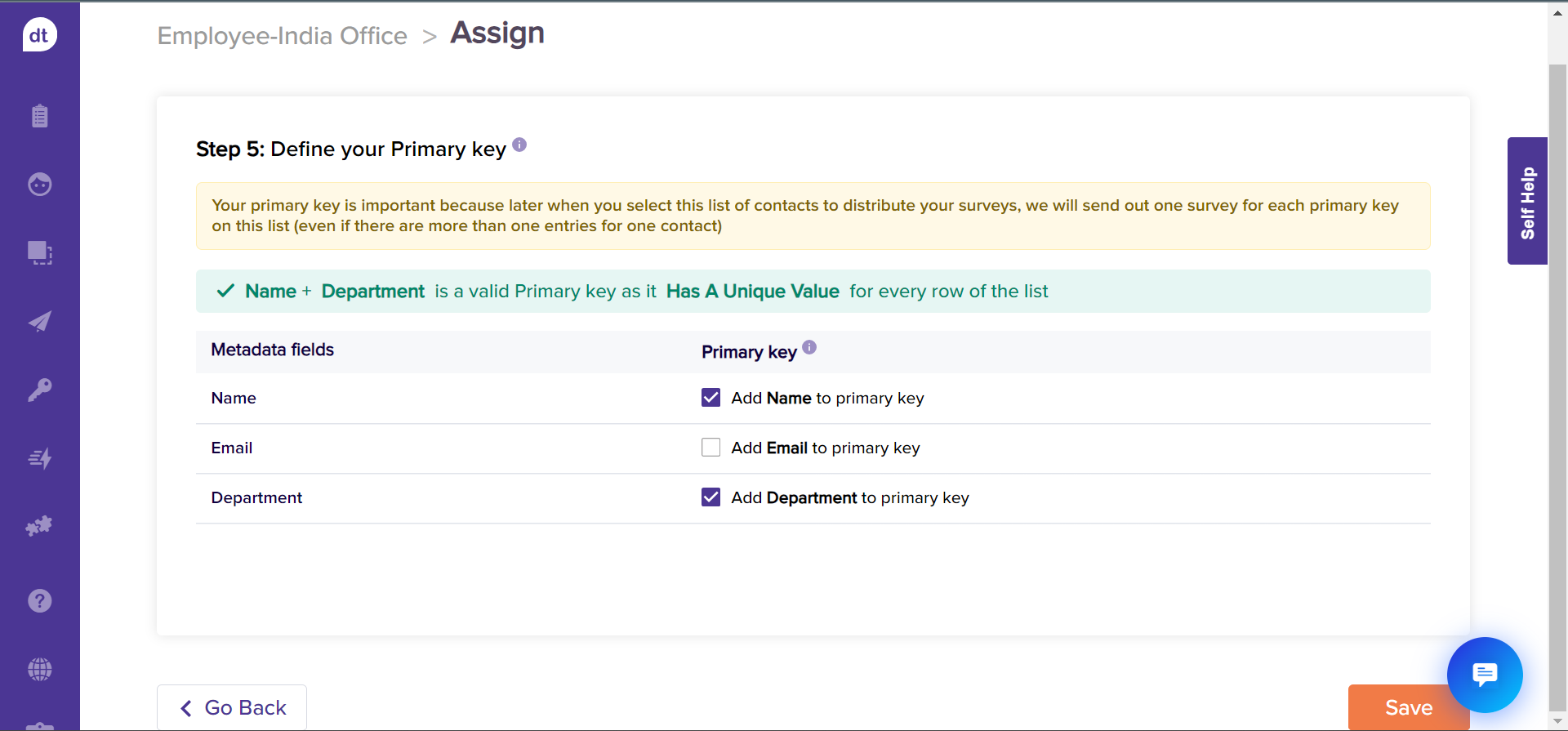 Click on the desired combination of metadata fields, and you will be prompted if it can be considered a primary key.