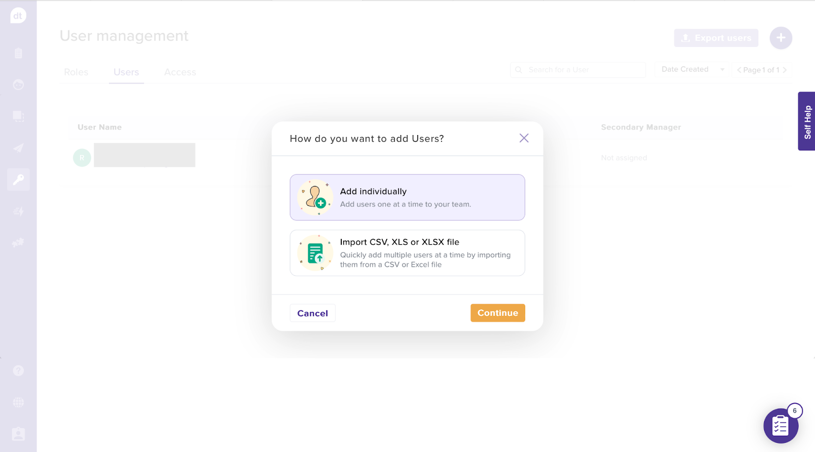 You can add a user by manually entering the details. However, it will be a tedious task when you have more users to add. In such cases, you can use Dropthought’s Bulk Import Users feature.