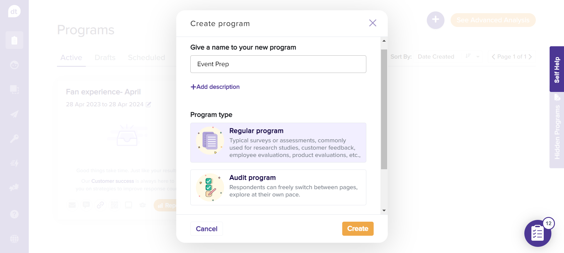 Additionally, click on the +Add description to enter more details about the program. You can add a description with up to 256 characters.