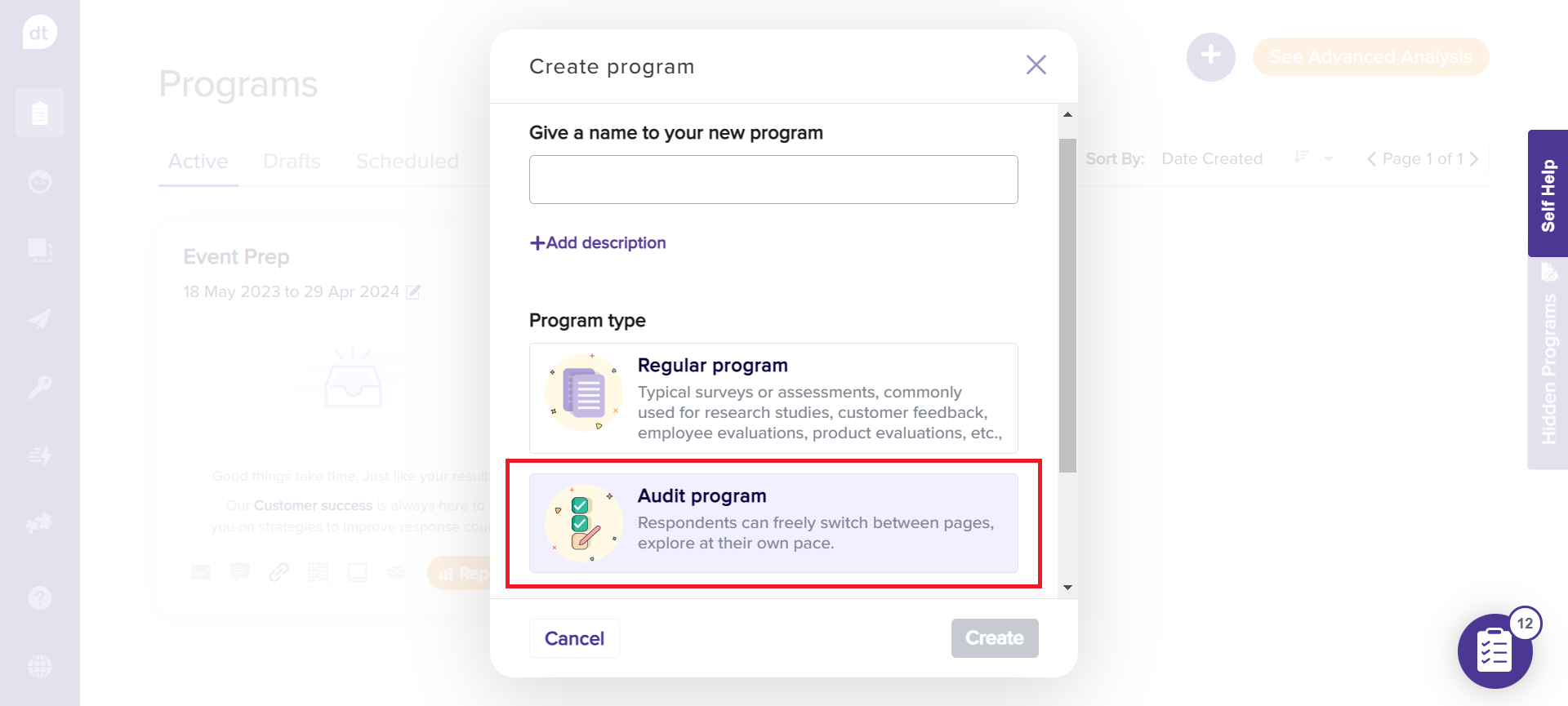 Once you enable the feature for your organization account, you can continue to use both regular and audit programs.
