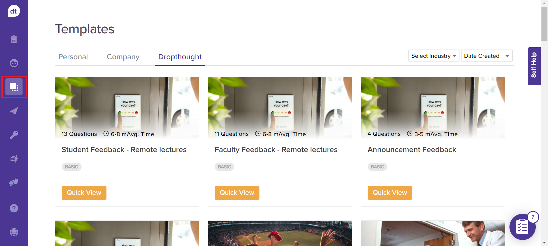 Dropthought templates: These are a set of system-generated templates. You can choose from Advanced templates. You may contact the CS team to enable them to your organization.