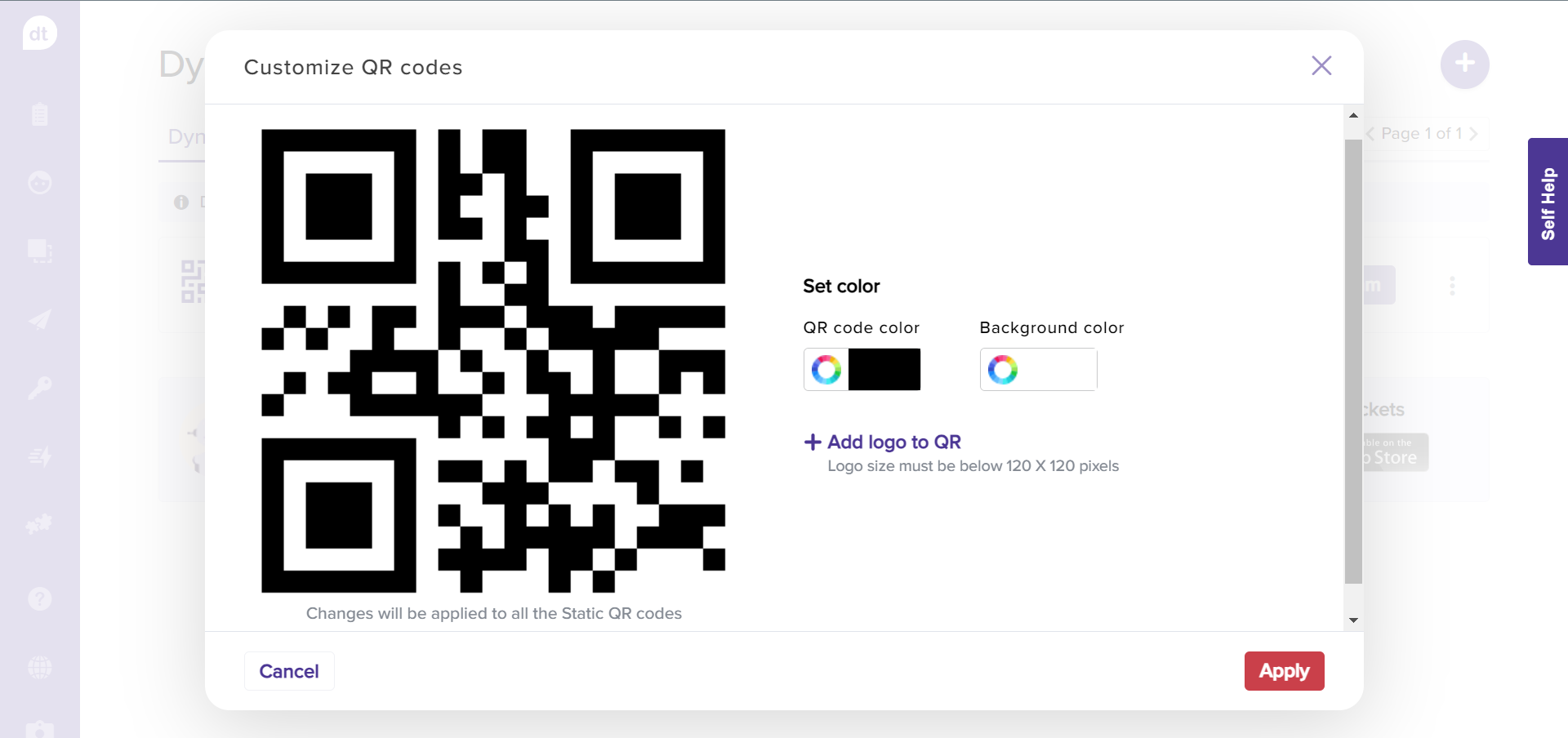 The customization will be applied to ALL QR Codes within the Dynamic Collector list.