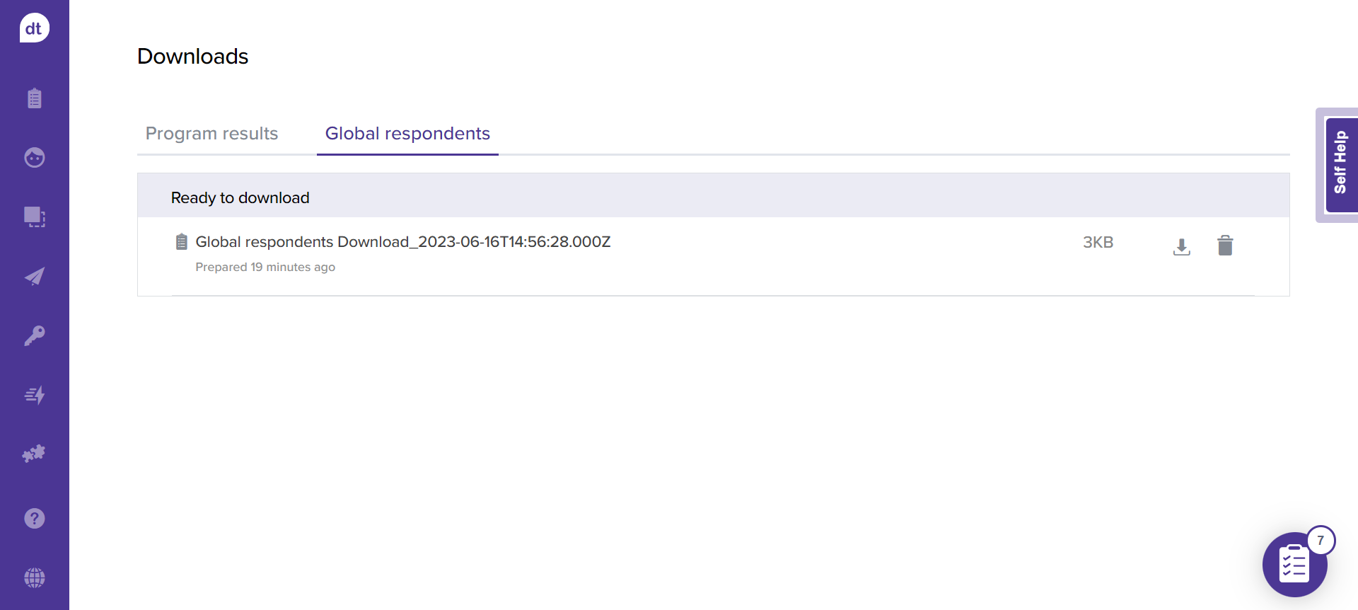 The Downloads section also displays if you have downloaded any global respondents' details from Dropthought.