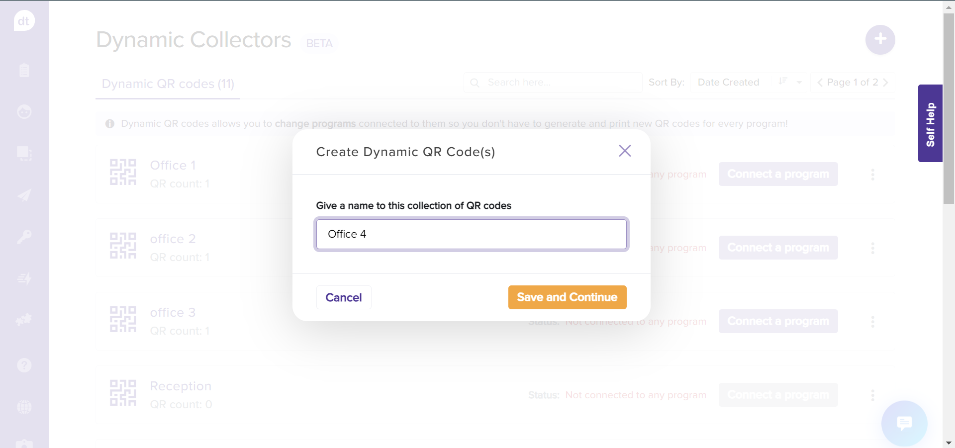 Dropthought’s Dynamic Collectors allows you to save time and effort in changing the QR codes based on the change in the program. In other words, you can manage the program that is linked to a QR code from your Dropthought account without having to change the QR code.