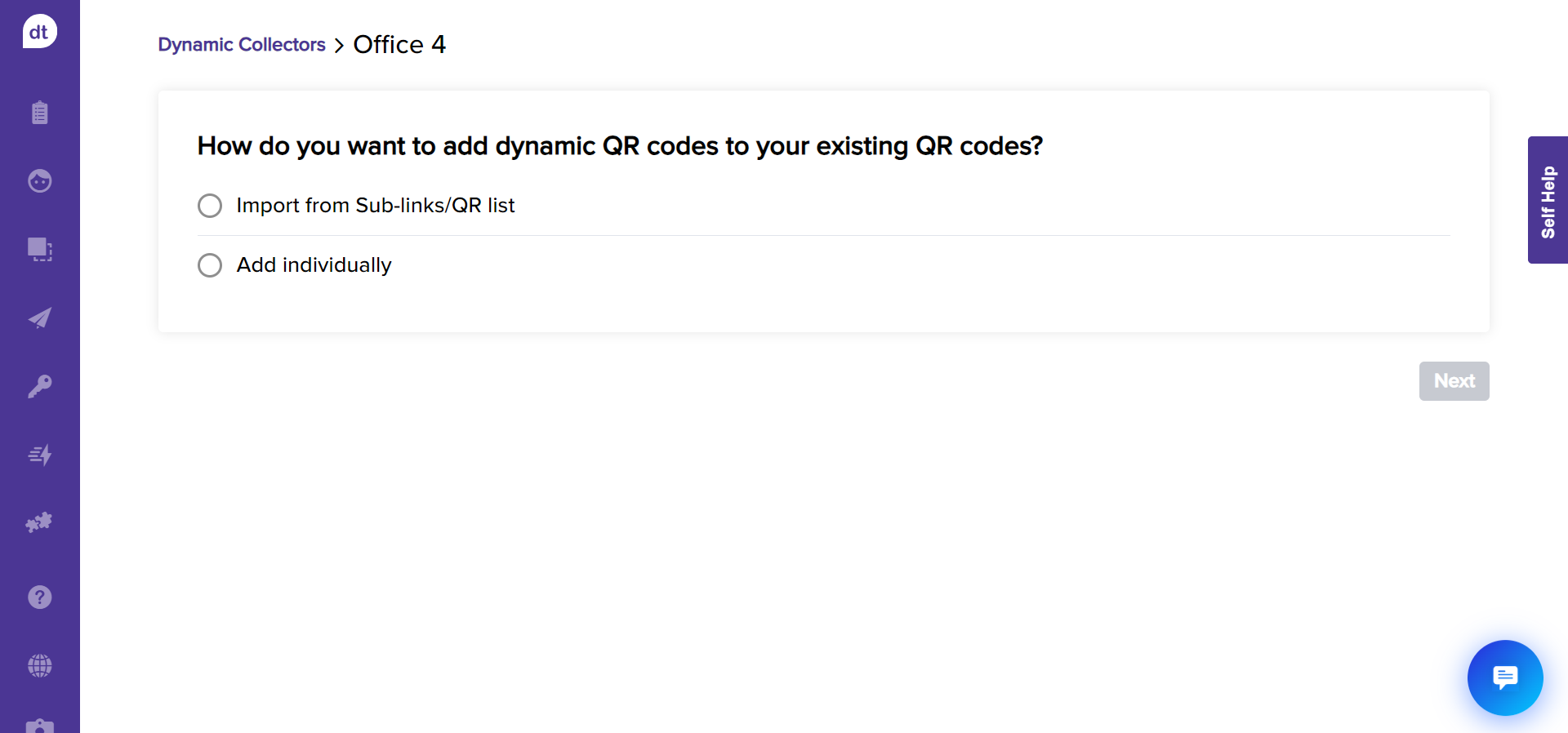 Select a method to add QR codes for the dynamic collector to proceed.
