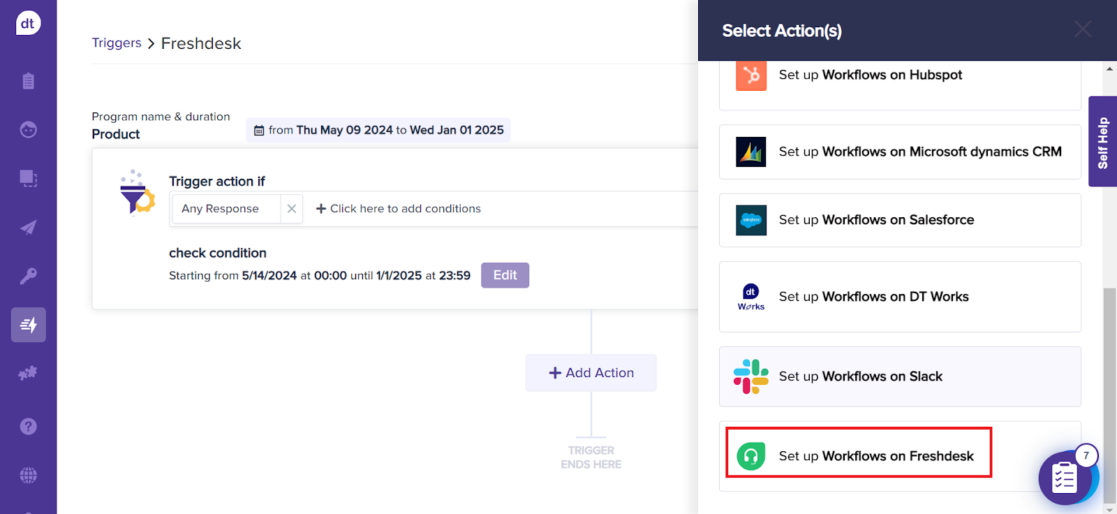 Select Set up Workflows on Freshdesk from the Select Action(s) screen.