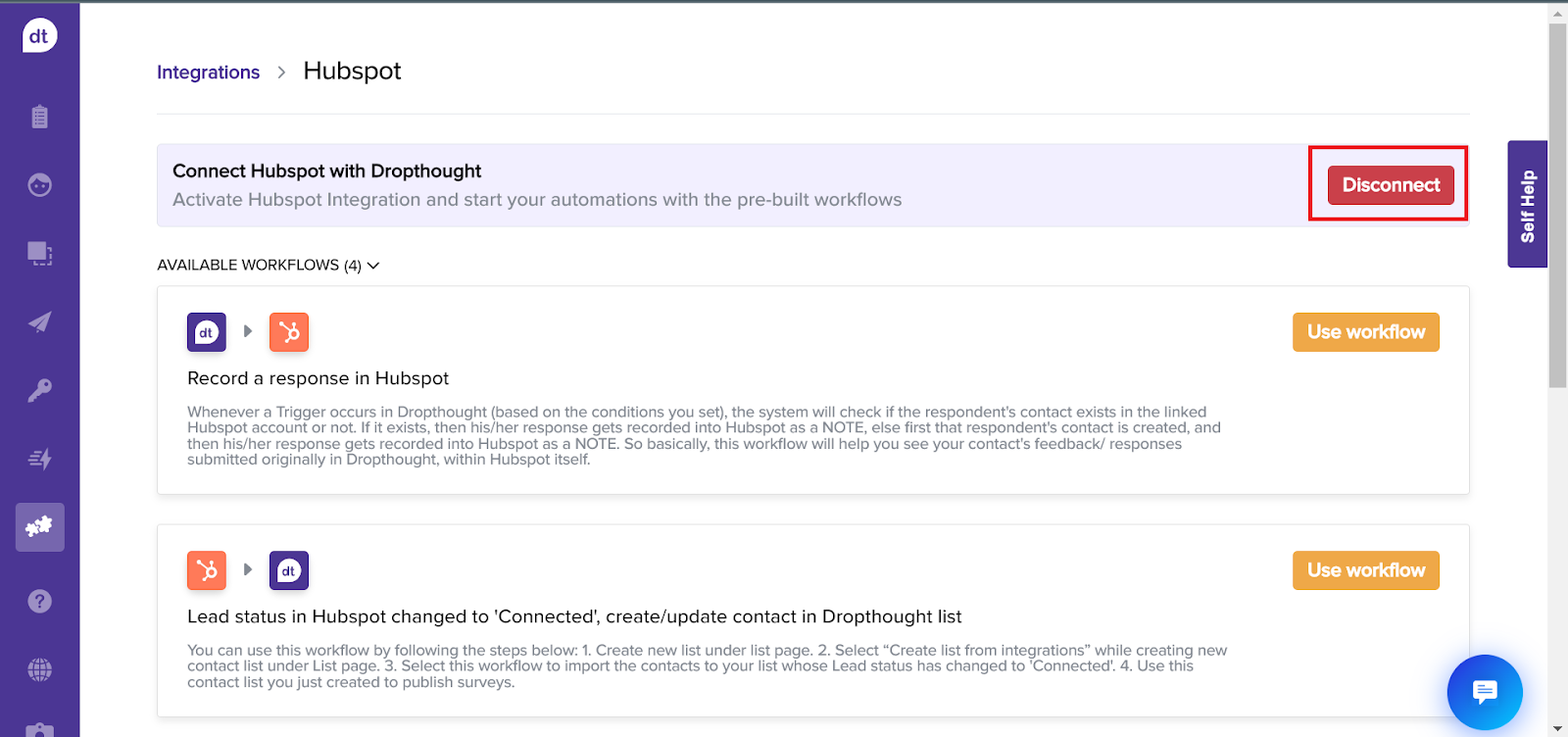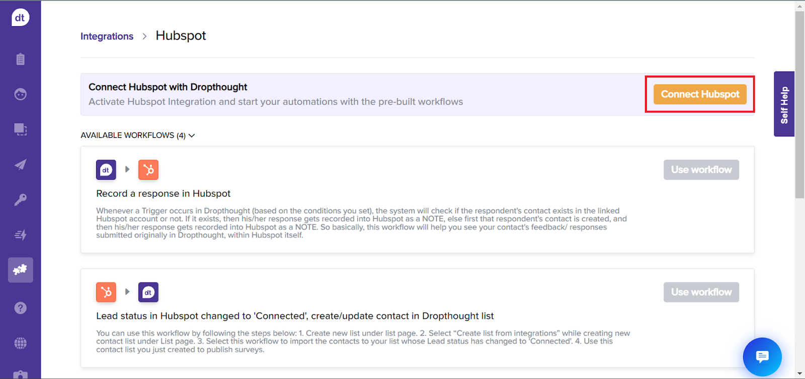 Manage contacts based on created leads in HubSpot or new responses received in Dropthought.