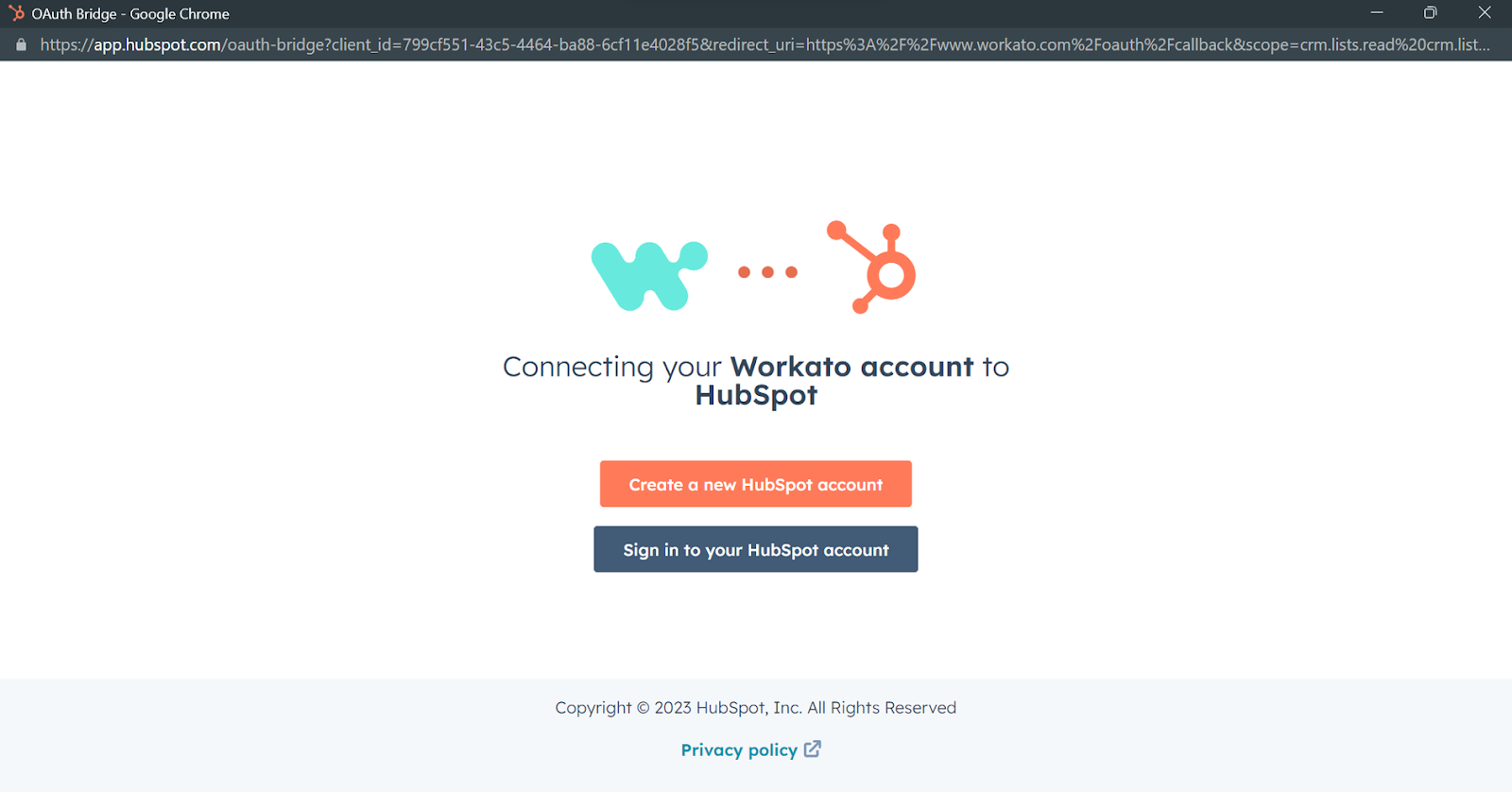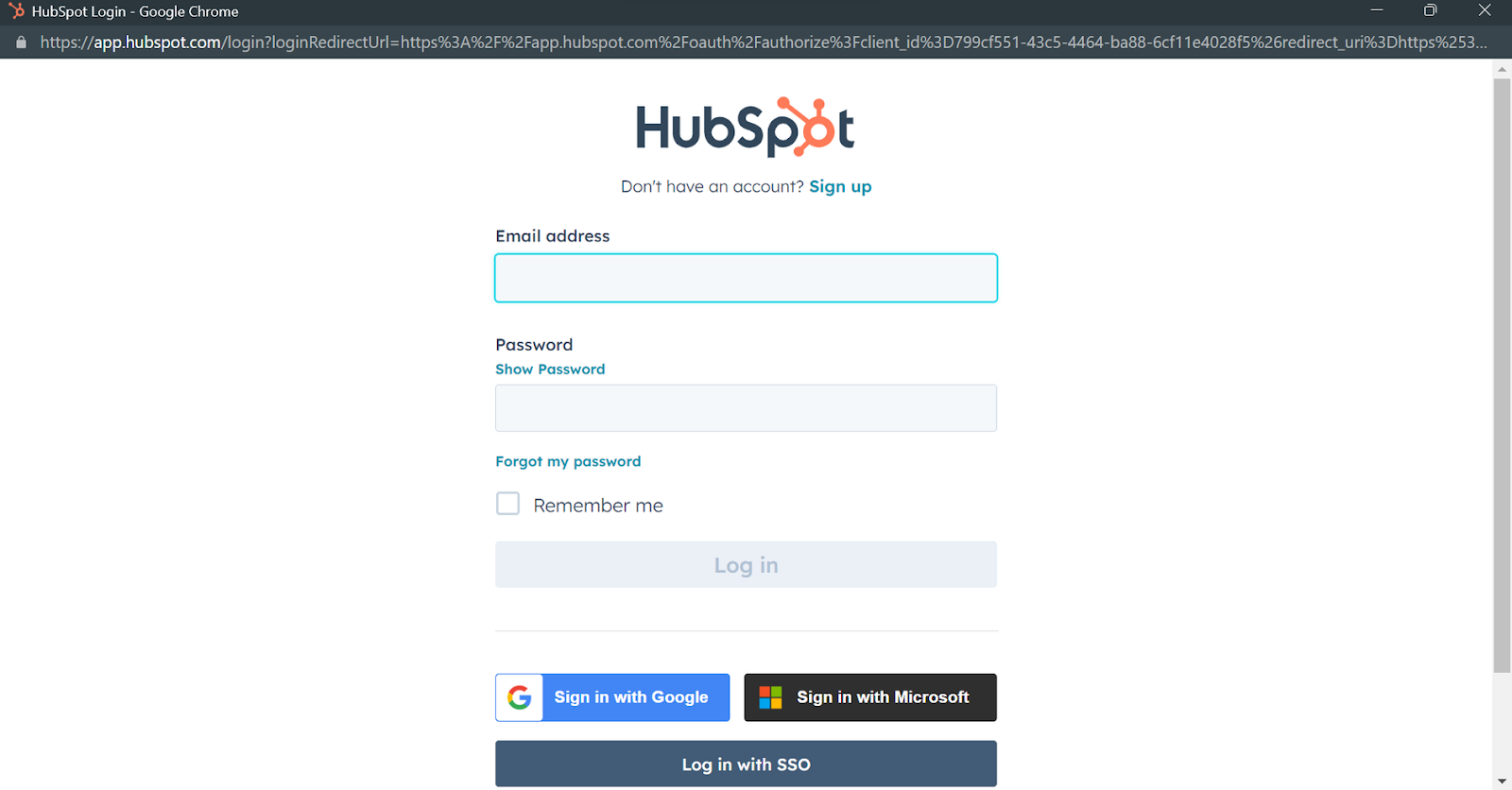 Enter the HubSpot account credentials from the following screen or sign in using the desired method.