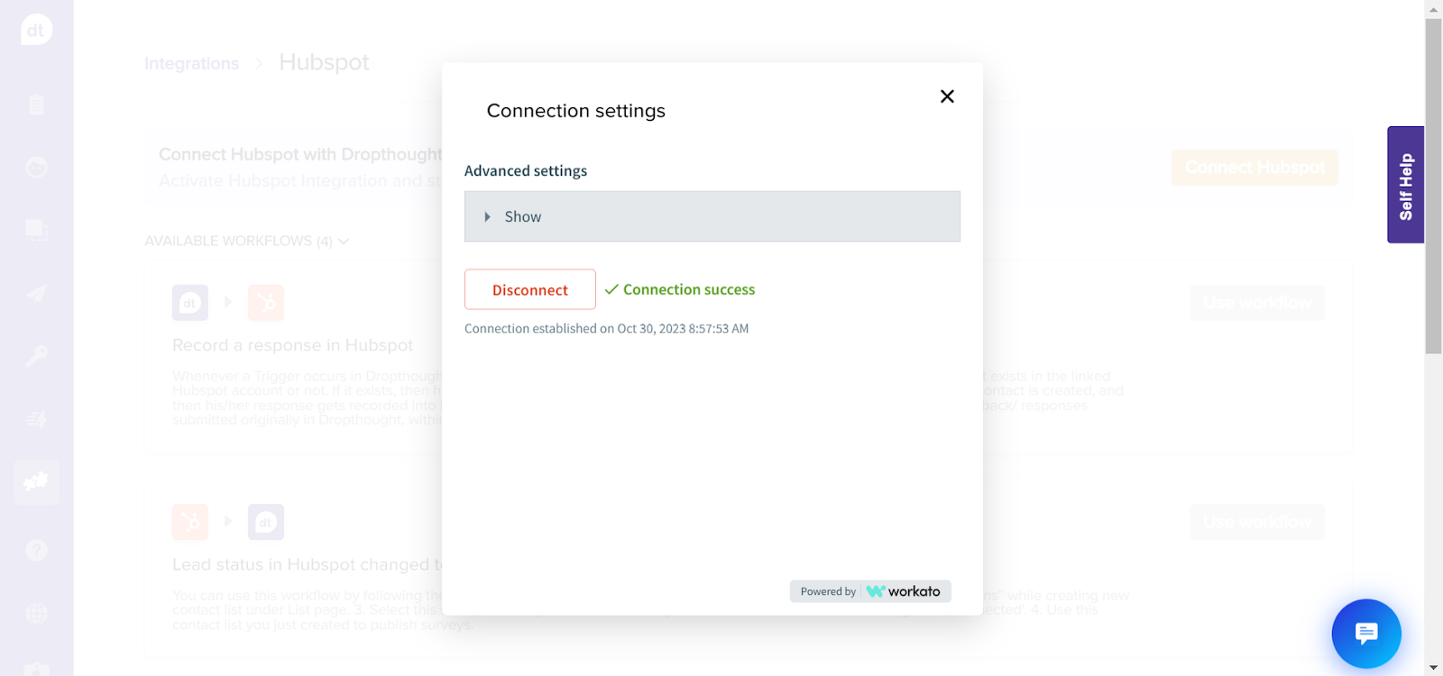 Automate recording responses received via Dropthought against the respective respondent contact on HubSpot.