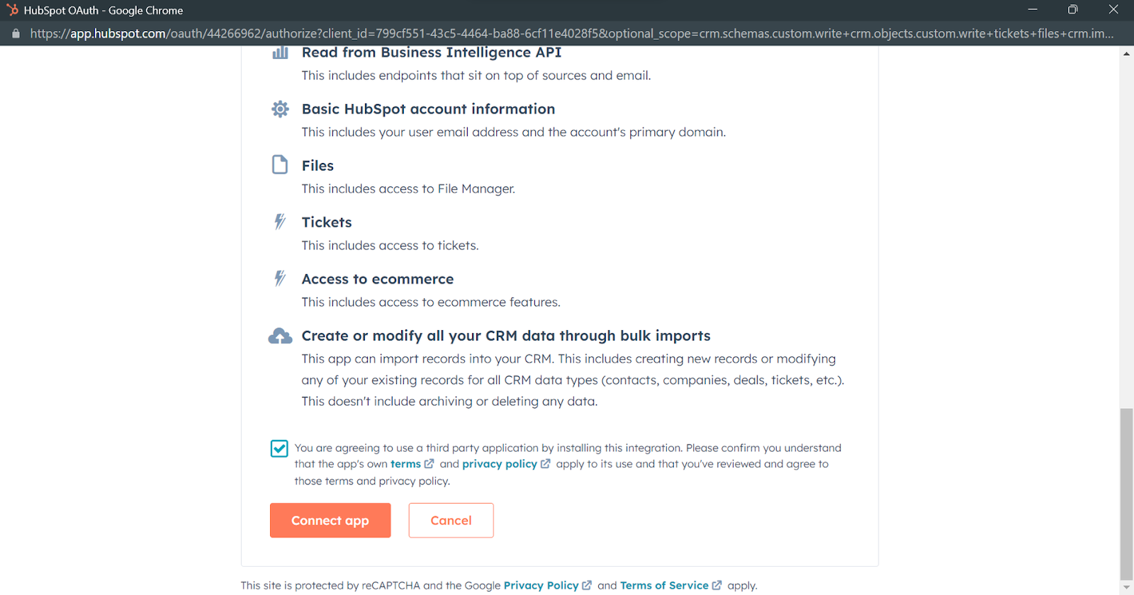 Review the permissions and T&C, and click on the Connect app.