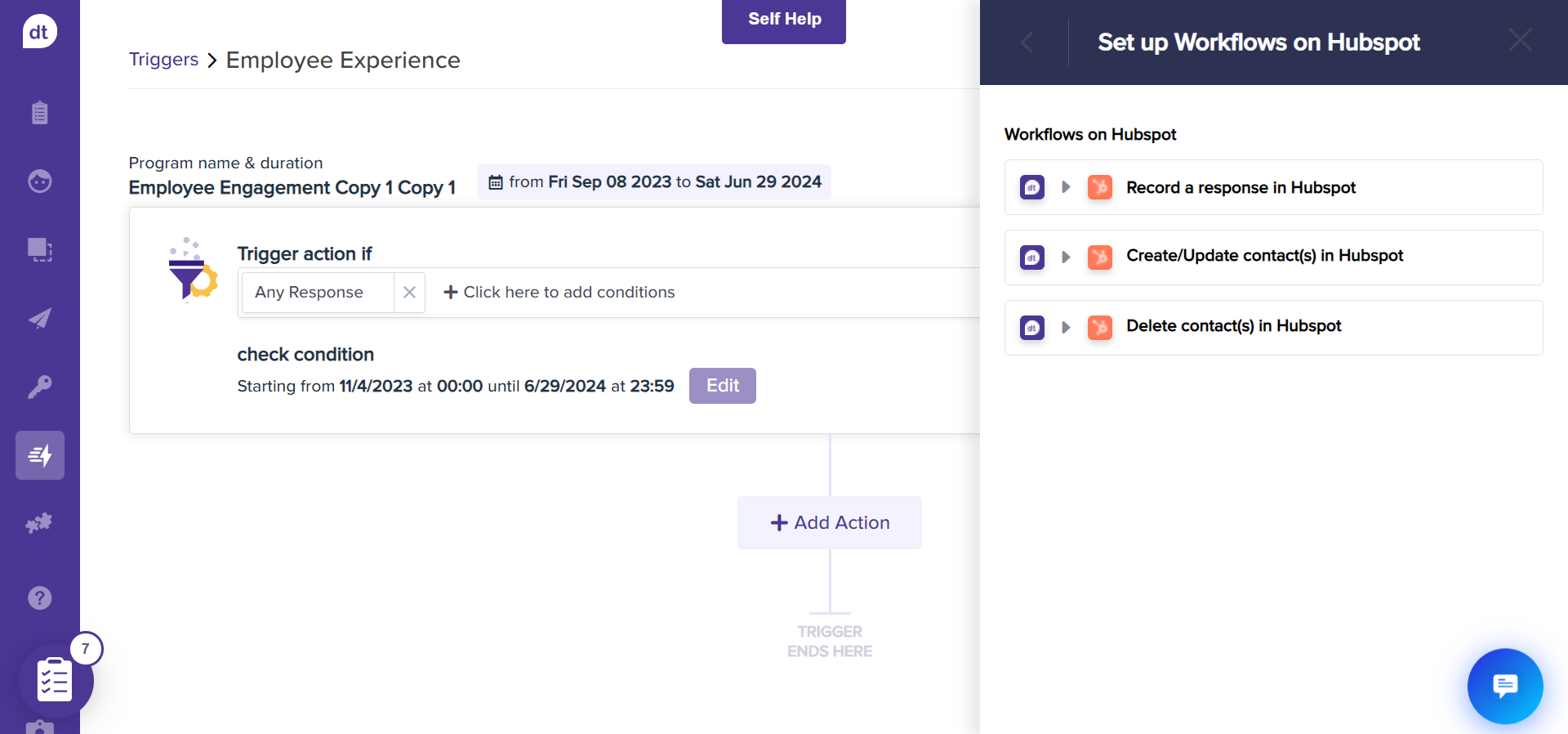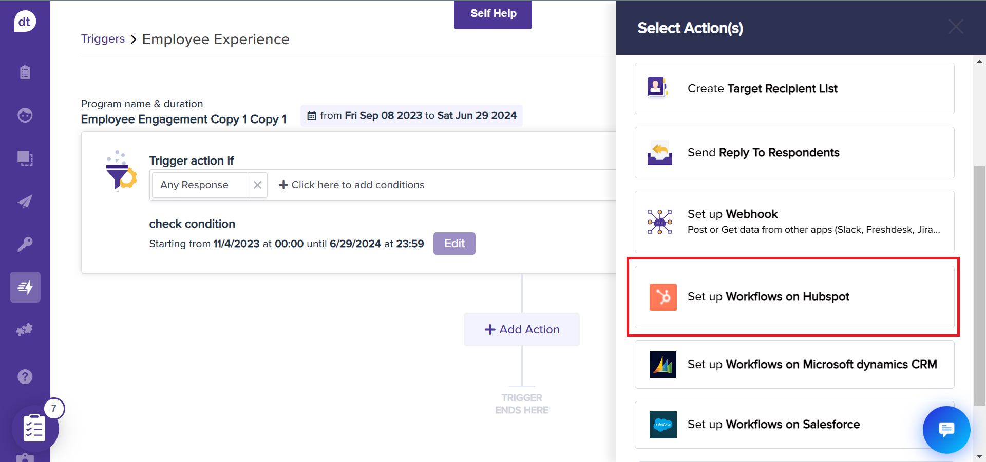 Select Setup Workflows on HubSpot from the Select Action(s) screen.