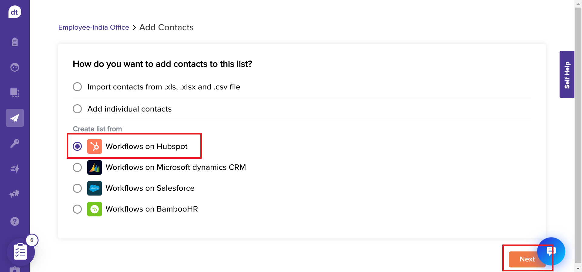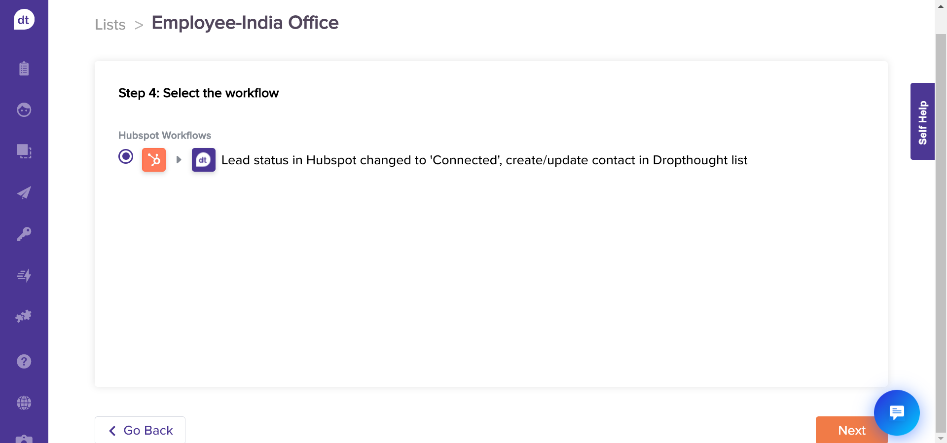 Select Workflows on HubSpot and click on Next.