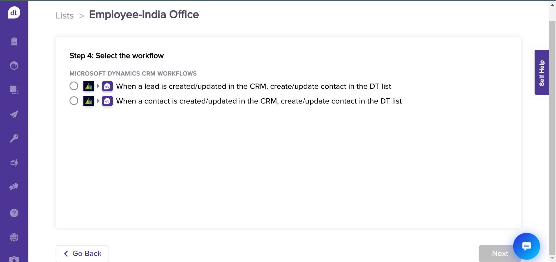 Enable the required workflow. If you do not have it enabled from the Integrations page, you can do so while selecting it from the Lists page as well.