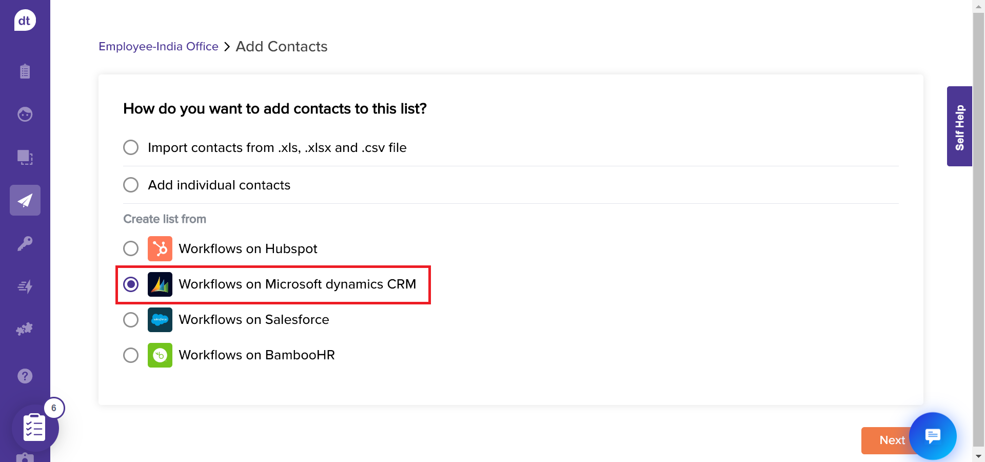 Select Workflows on Microsoft dynamics CRM and click on Next.