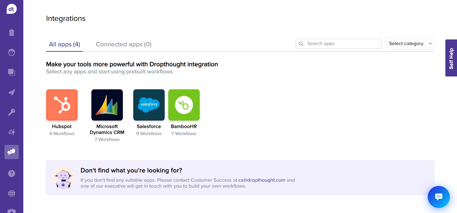 The All apps tab will show all the third-party applications available for integration with Dropthought.