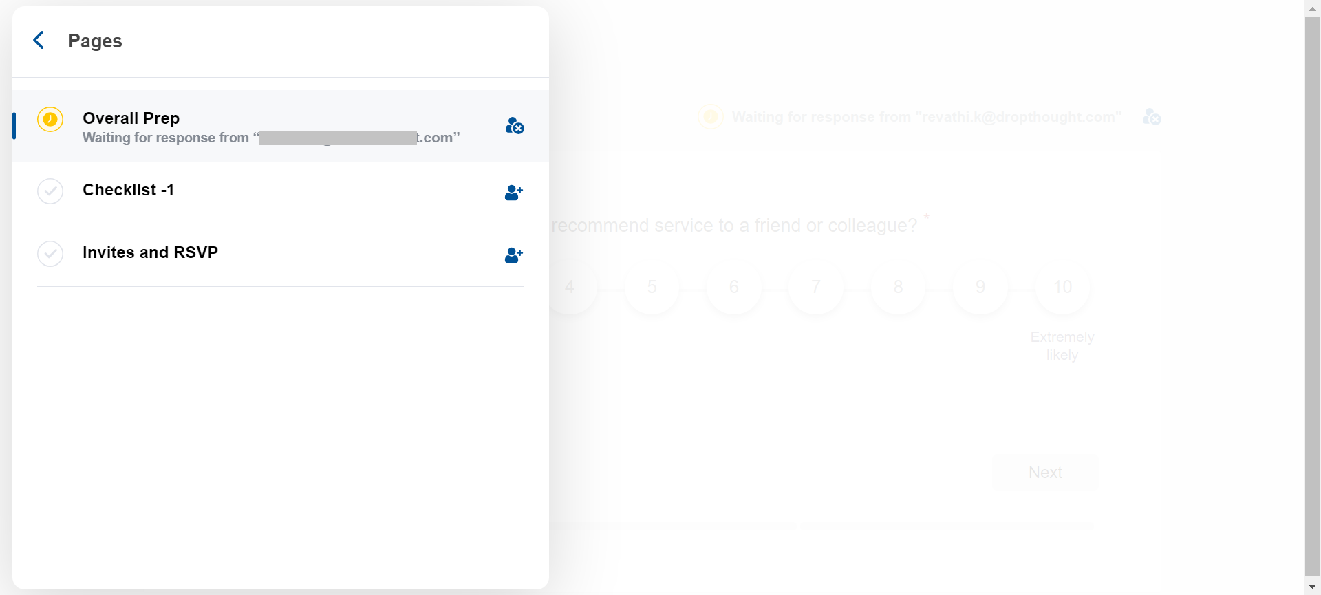 Upon inviting the collaborator, you can view the status from the Table of Contents: