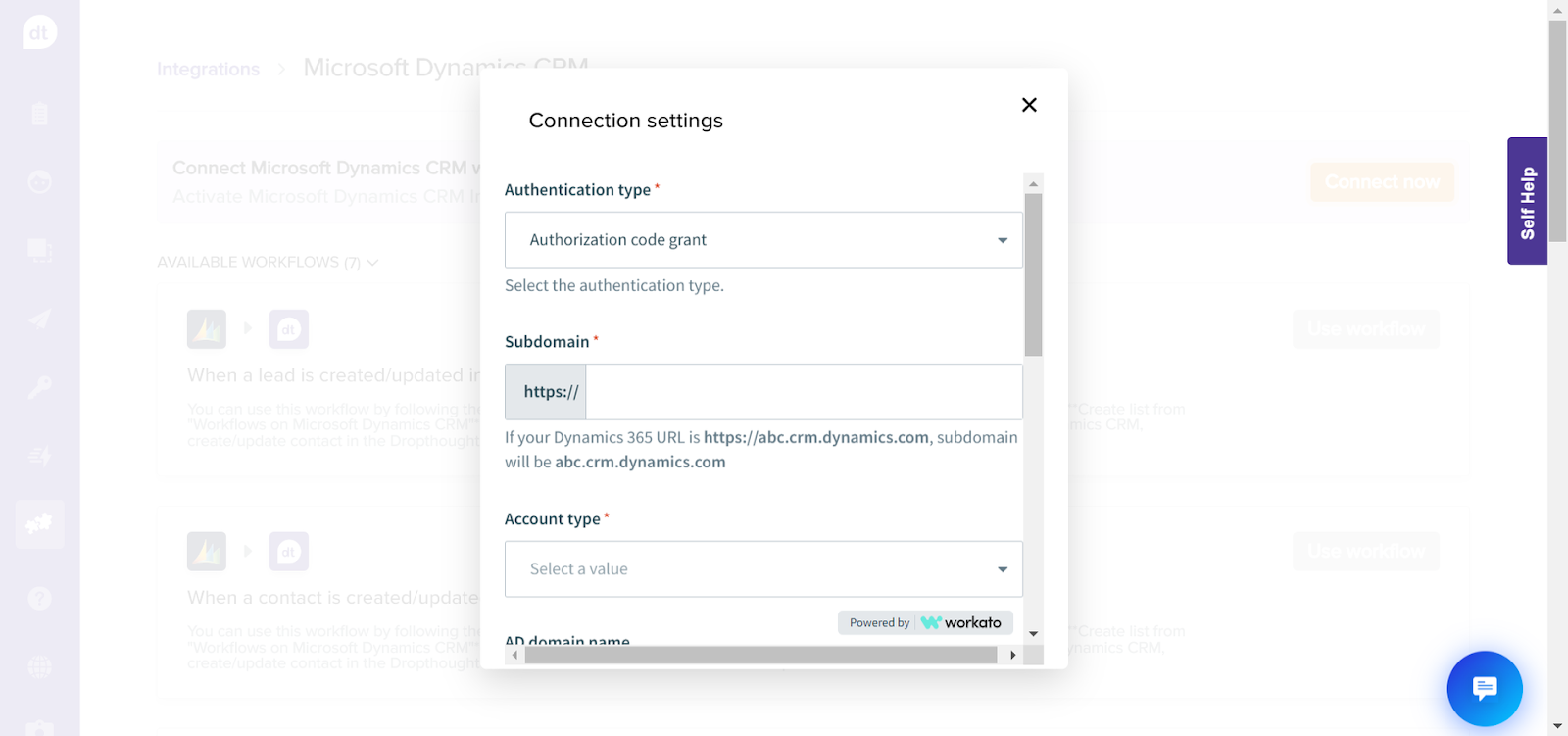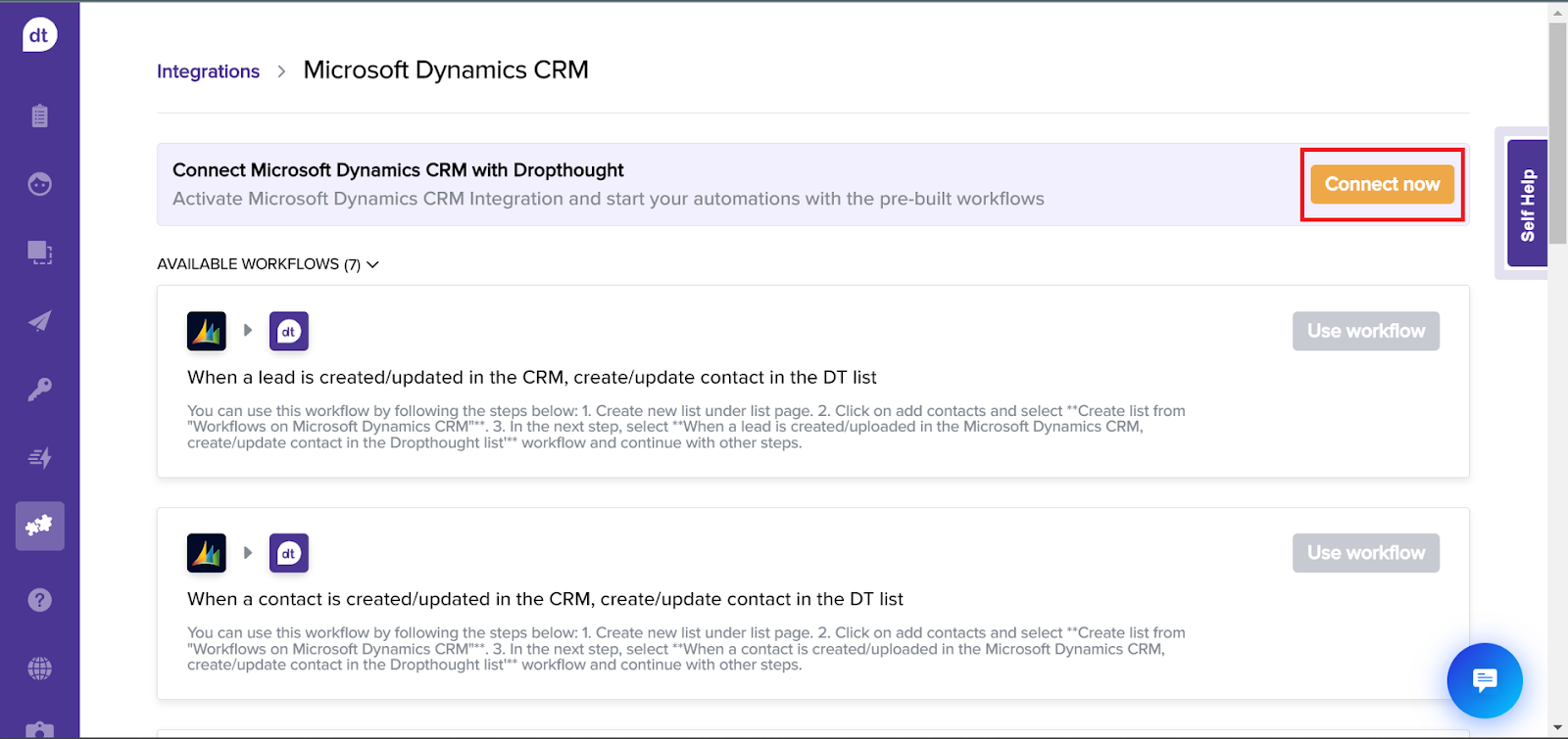 How do you enable MS Dynamics CRM integration on Dropthought?