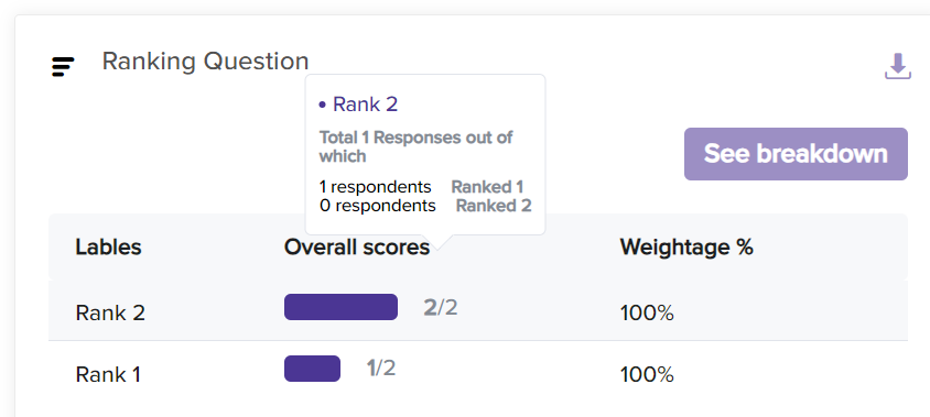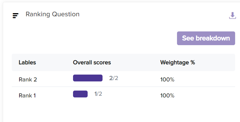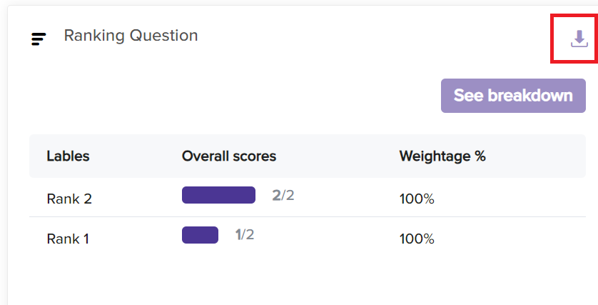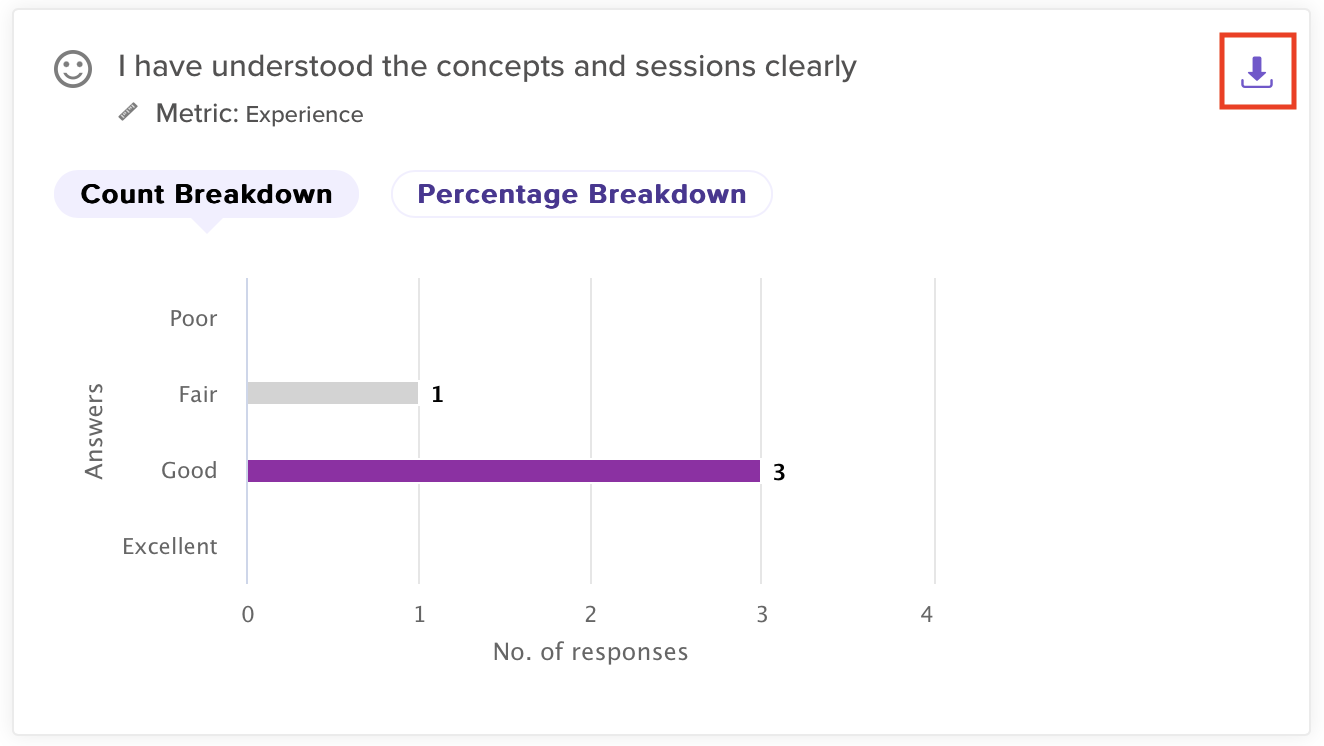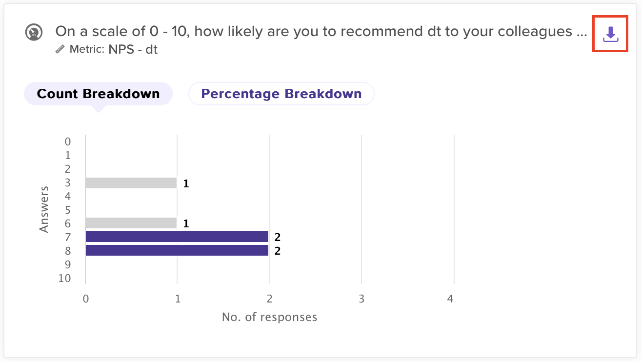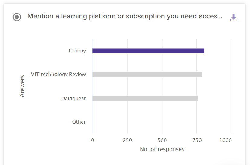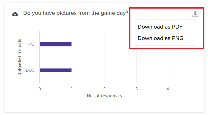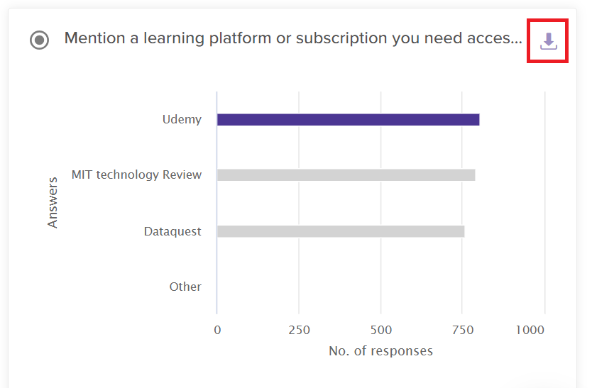 All the responses can be downloaded as PDF, PNG, or CSV based on the question type.