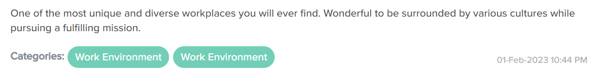 If Text Analytics is enabled- the category and sentiments are displayed similar to open ended question The responses can be restructured using category/intent + sentiment: User can select a category from the drop-down menu and combine it with one or more sentiments. Similar functionality is available for Intent as well. |