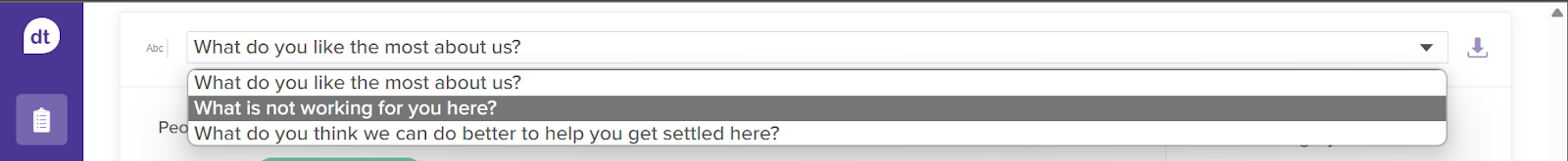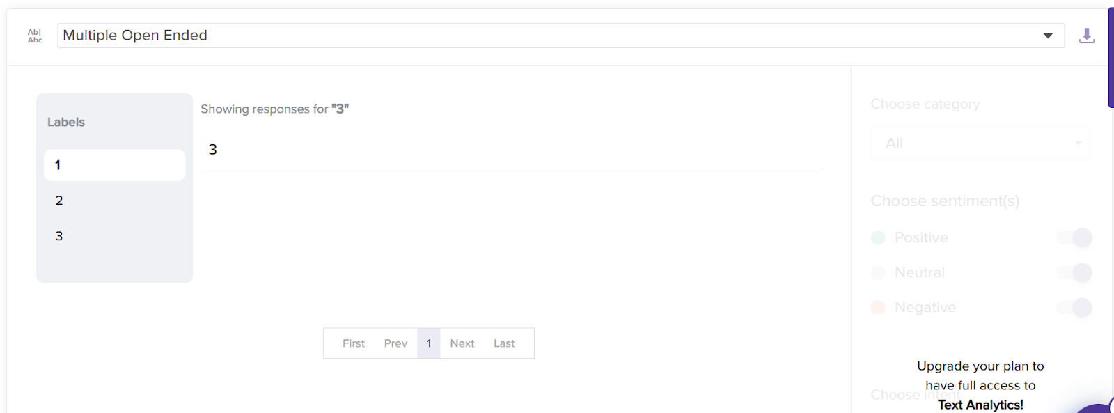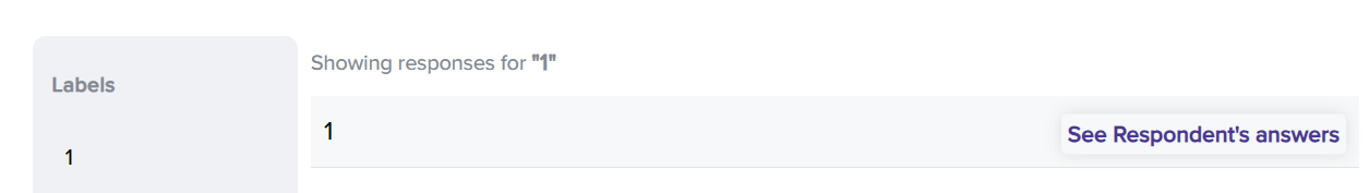 View responses received for each of the open-ended questions All the responses received for the respective label will be listed along with a button that takes to the respondents' responses to all questions. Questions can be selected from the drop down menu. |