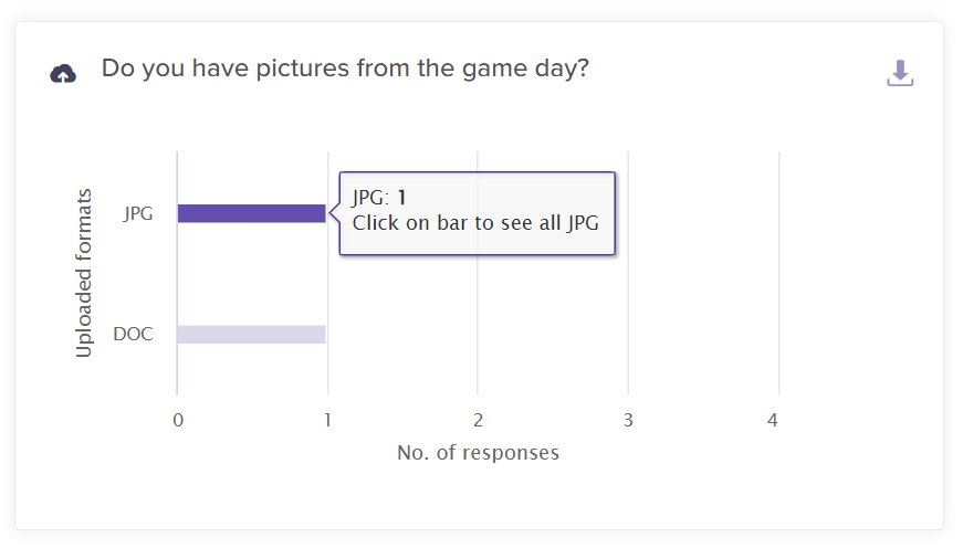 Users can view the format of the file uploaded as responses. Clicking on the respective bar lets you view all the responses within the file format.