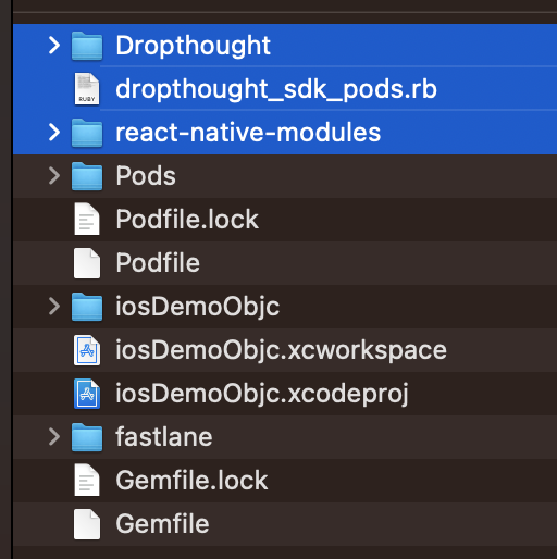 Further, you should move/copy the two repositories Dropthought and react-native modules, into your project root. Ensure to use the same path/level as the Podfile.