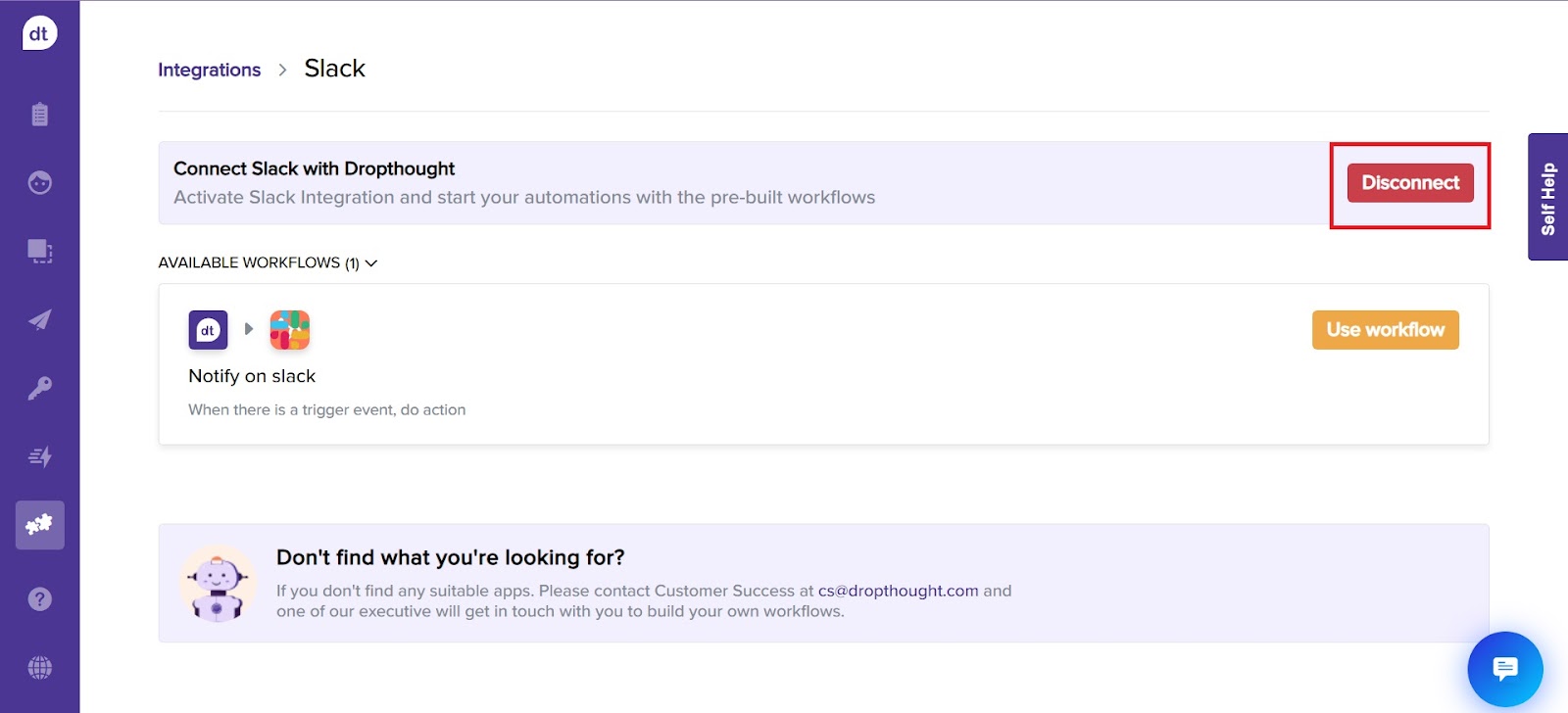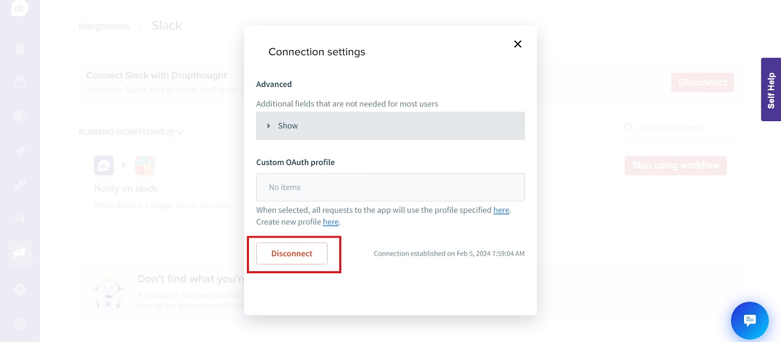 Note: Upon disconnecting Slack, all active workflows will be deactivated.
