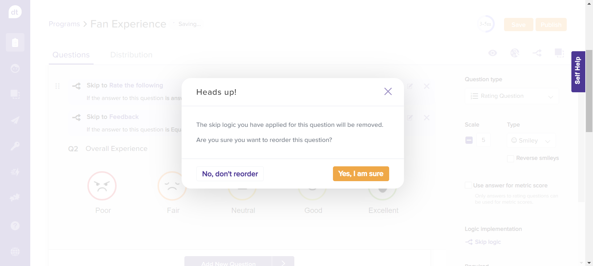 Similar to re-ordering pages, you can re-order questions as well.