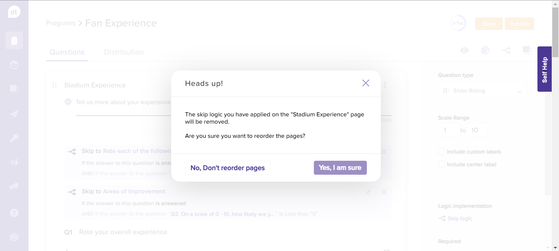 Re-order questions within a page