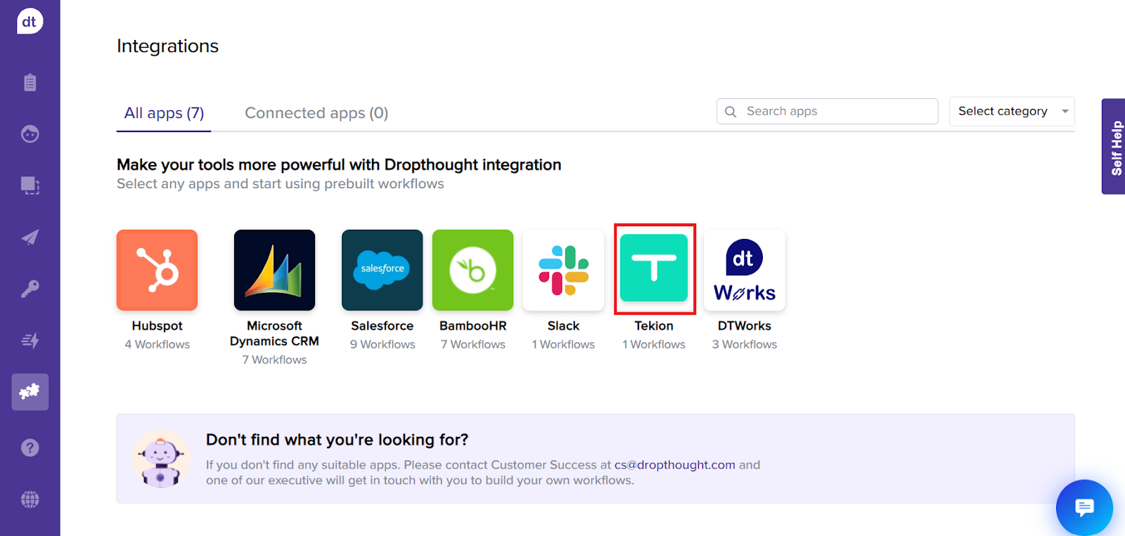 Click on the Tekion logo. You can view the available workflows below the app’s logo.