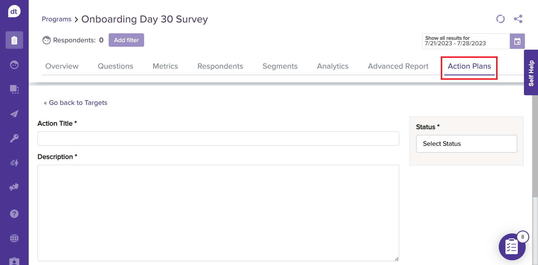 You can enter an Action Plan Title and create your own Action Plan. Please refer to the previous section to learn more about each field on the page.