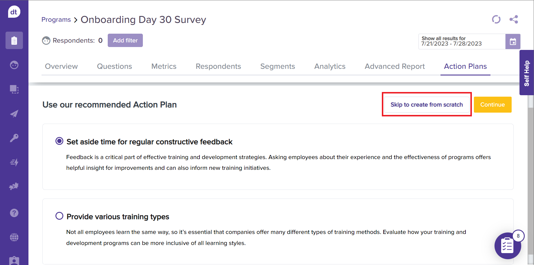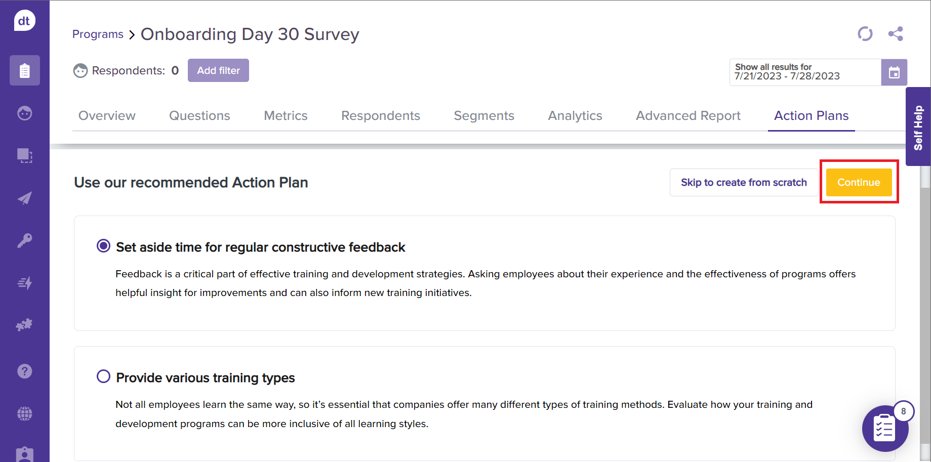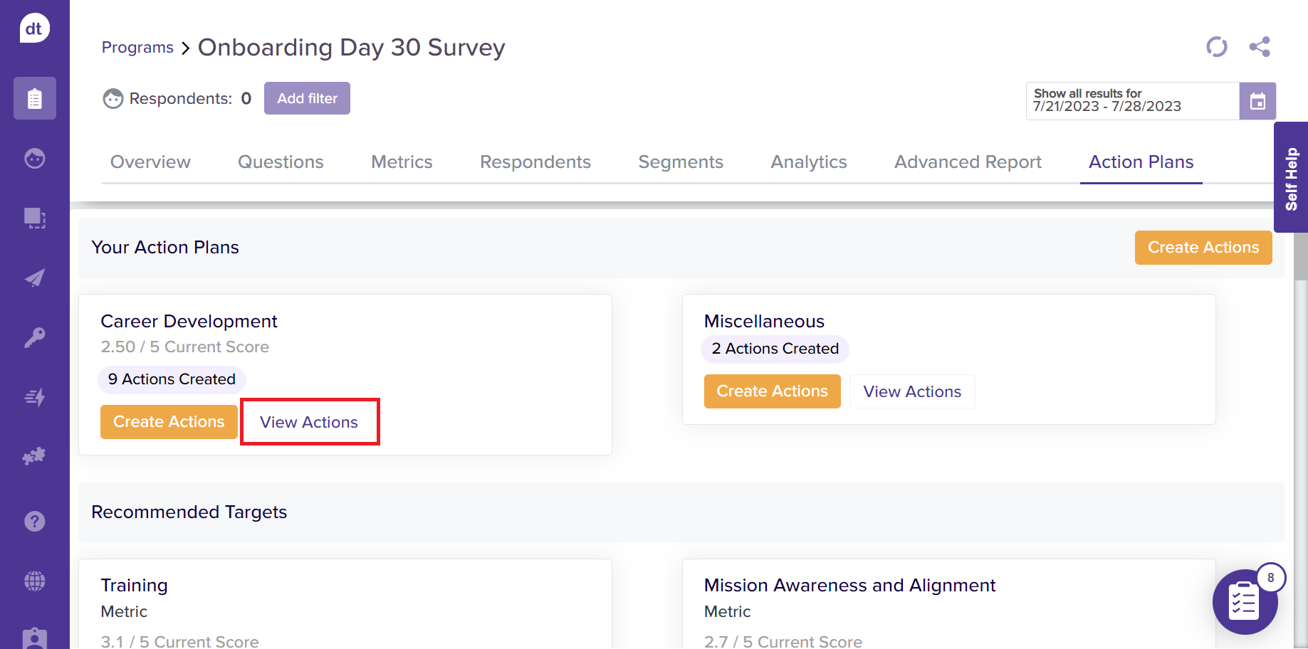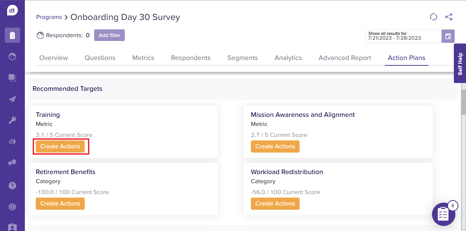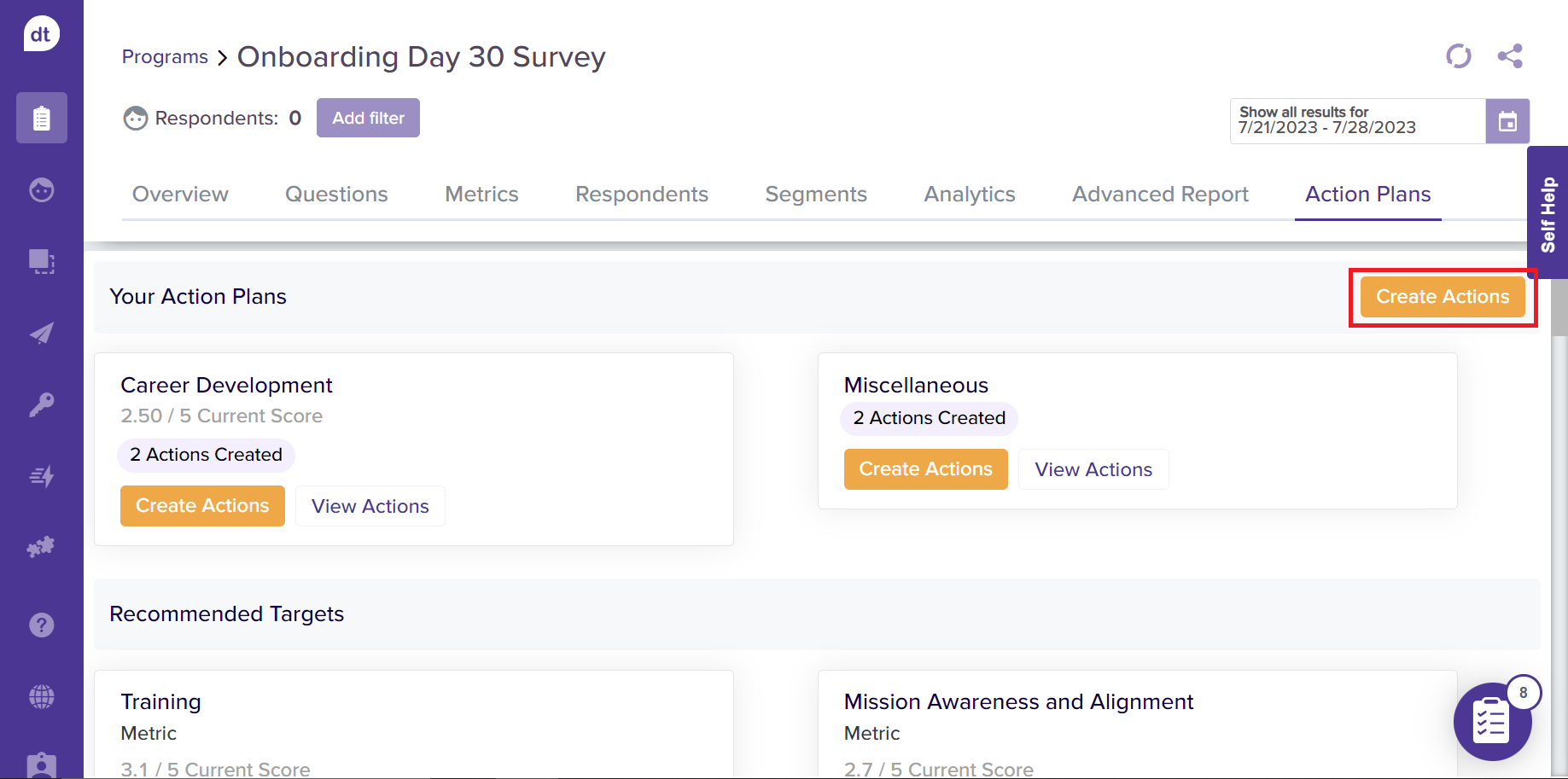 From the action plans tab, follow the below steps to get started with creating Action Plans: