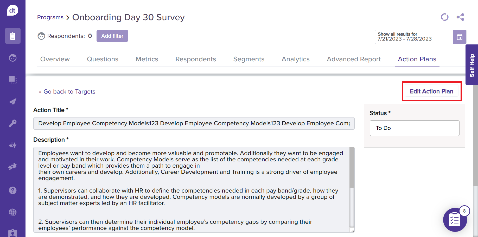 From the following screen, you can view the action plan details. Click on Edit Action Plan to modify any of the details.