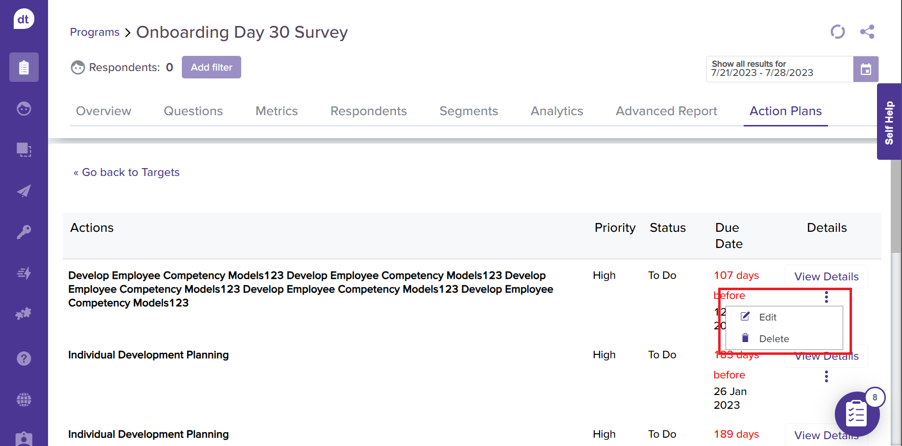 You can also click on more options (three dots) from the previous page to edit or delete any Action Plan.