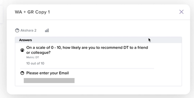 Click on Feedback through WhatsApp to expand and view the responses submitted by the respective respondent.