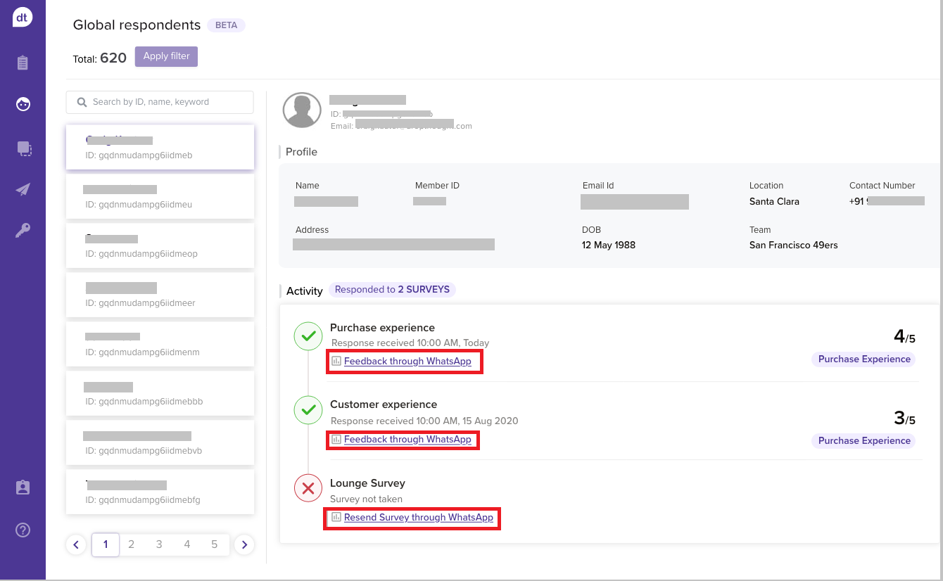 The responses received for the program via WhatsApp can also be distinguished on the Global Respondents page.